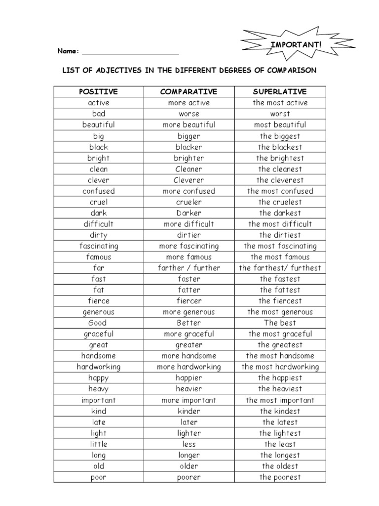 List Of Adjectives In The Different Degrees Of Comparison 6nq89rzxr1nw