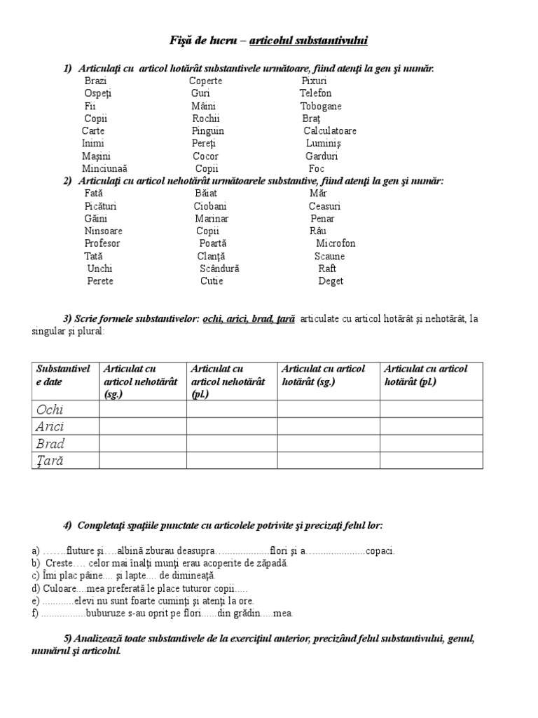 Gramatica Pe Intelesul Elevilor Articolul Explicatii Si Exemple