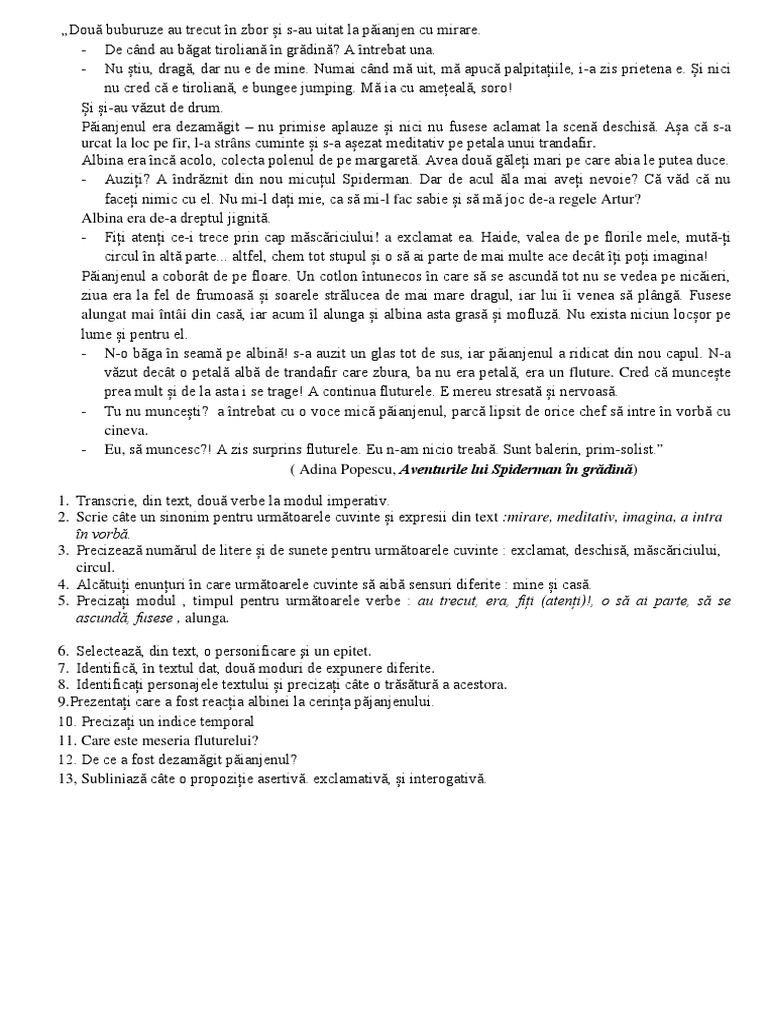 Teza Clasa A Vi A Text Literar De Adina Popescu Aventurile Lui Spiderman In Grădină Luciarus 28 11 2019