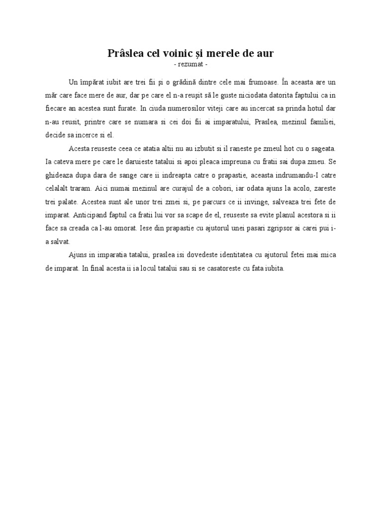 Rezumat Praslea Cel Voinic Si Merele De Aur