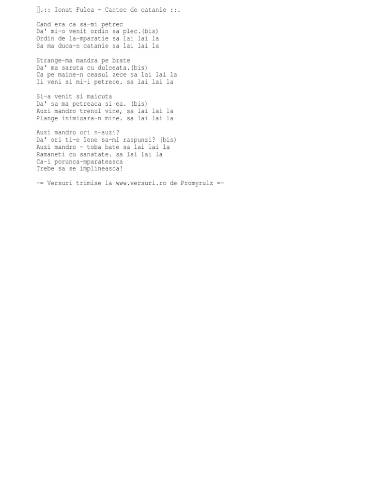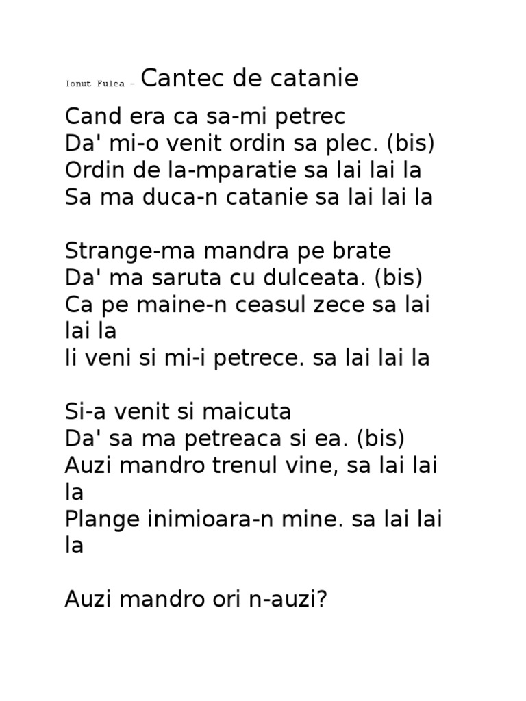 Cantec De Catanie Versuri