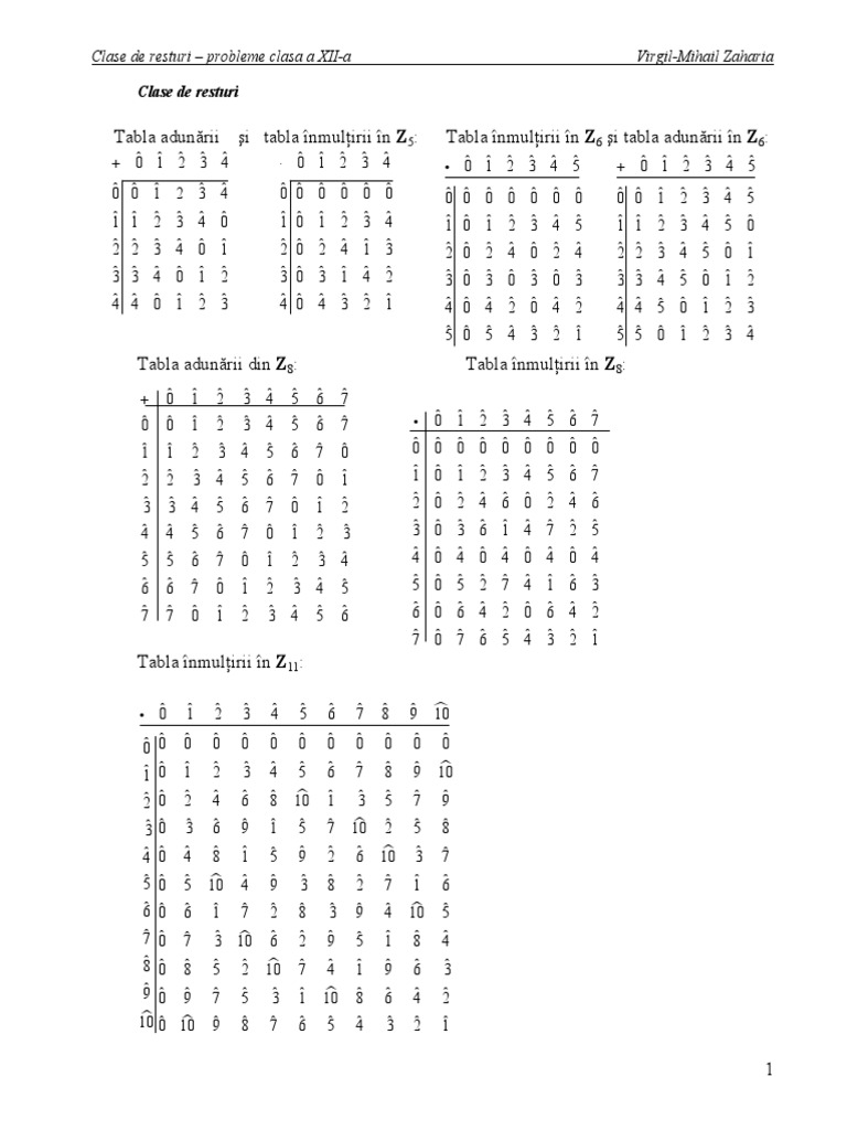 Formule Matematica Grupuri Grupul Claselor De Resturi Modulo N
