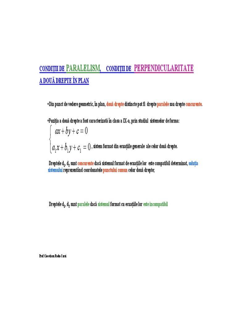 Conditii De Paralelism Si De Perpendiculatirate