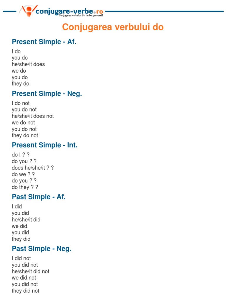 Conjugarea Verbului To Do Linguistic Typology English Grammar