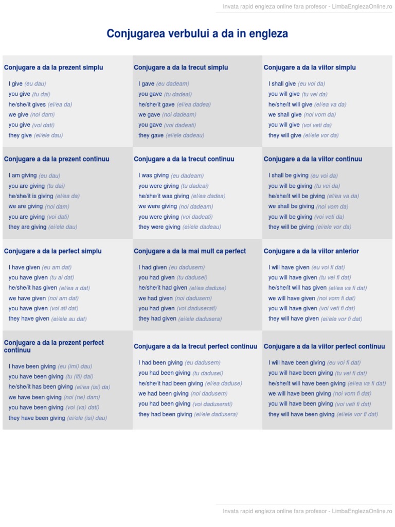 Conjugarea Verbului A Continua In Engleza