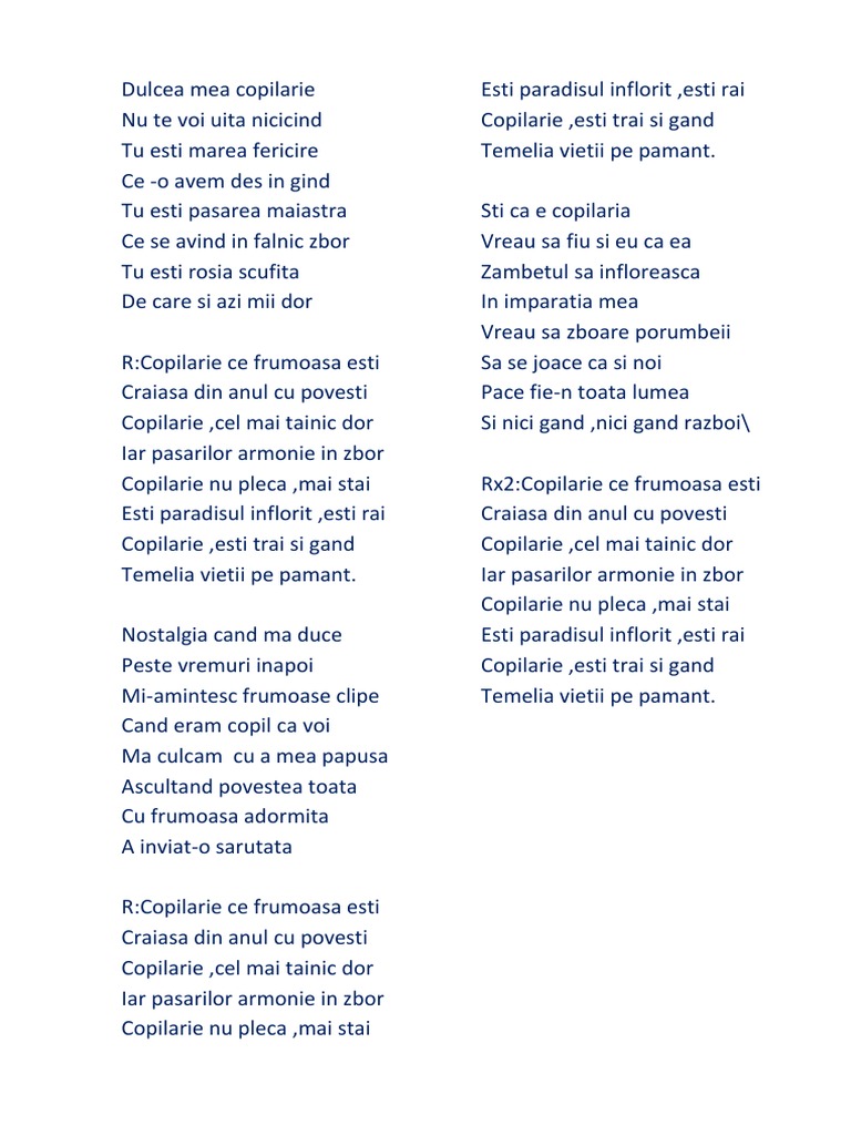 Copilarie Ce Frumoasa Esti