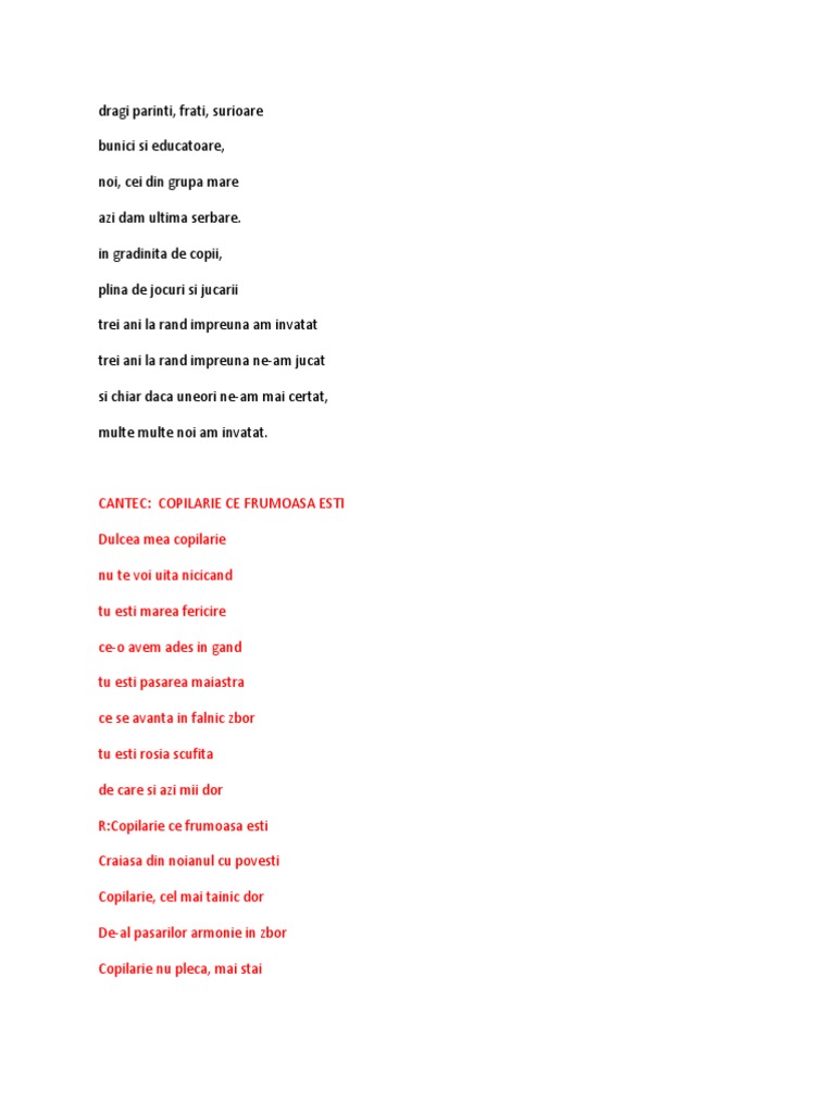 Versuri Cantece Serbare