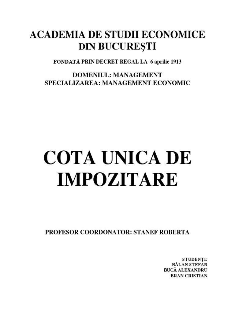 Proiect Efectele Cotei Unice De Impozitare Experiente Internationale Economie 98975