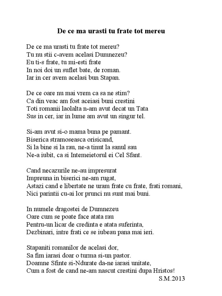 De Ce Ma Urasti Tu Frate
