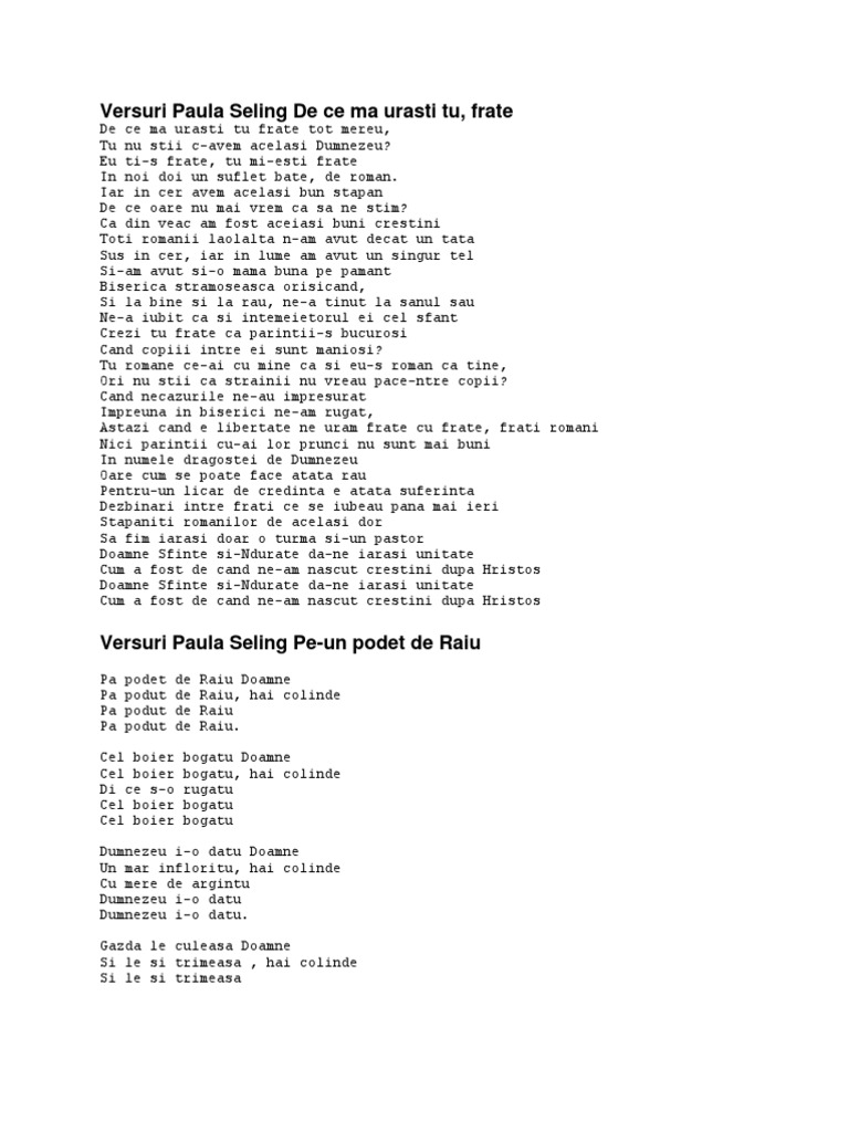Versuri Paula Seling De Ce Ma Urasti Tu
