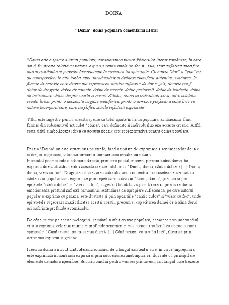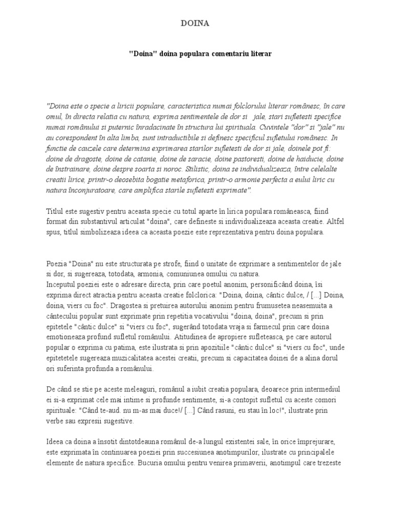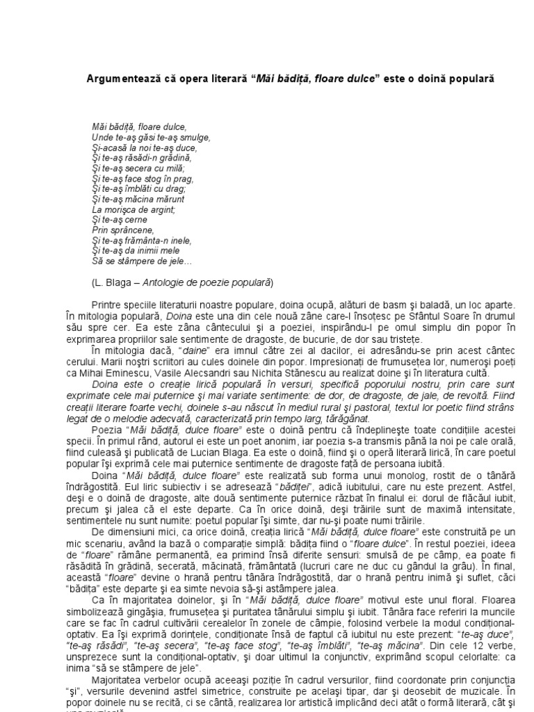 Argumentare Doina Populara