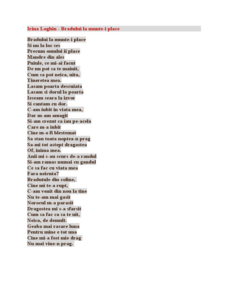 Bradului La Munte I Place Lyrics By Irina Loghin Bradului La Munte I Place