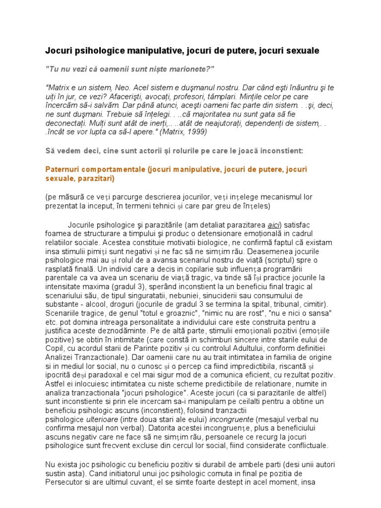 Jocuri Psihologice Jocuri De Putere Jocuri Sexuale Jocuri Manipulative
