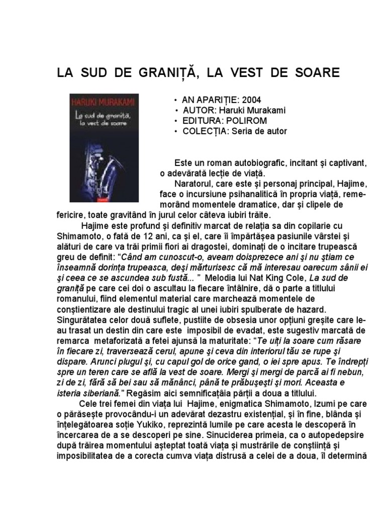 La Sud De Granita La Vest De Soare Haruki Murakami Pdf
