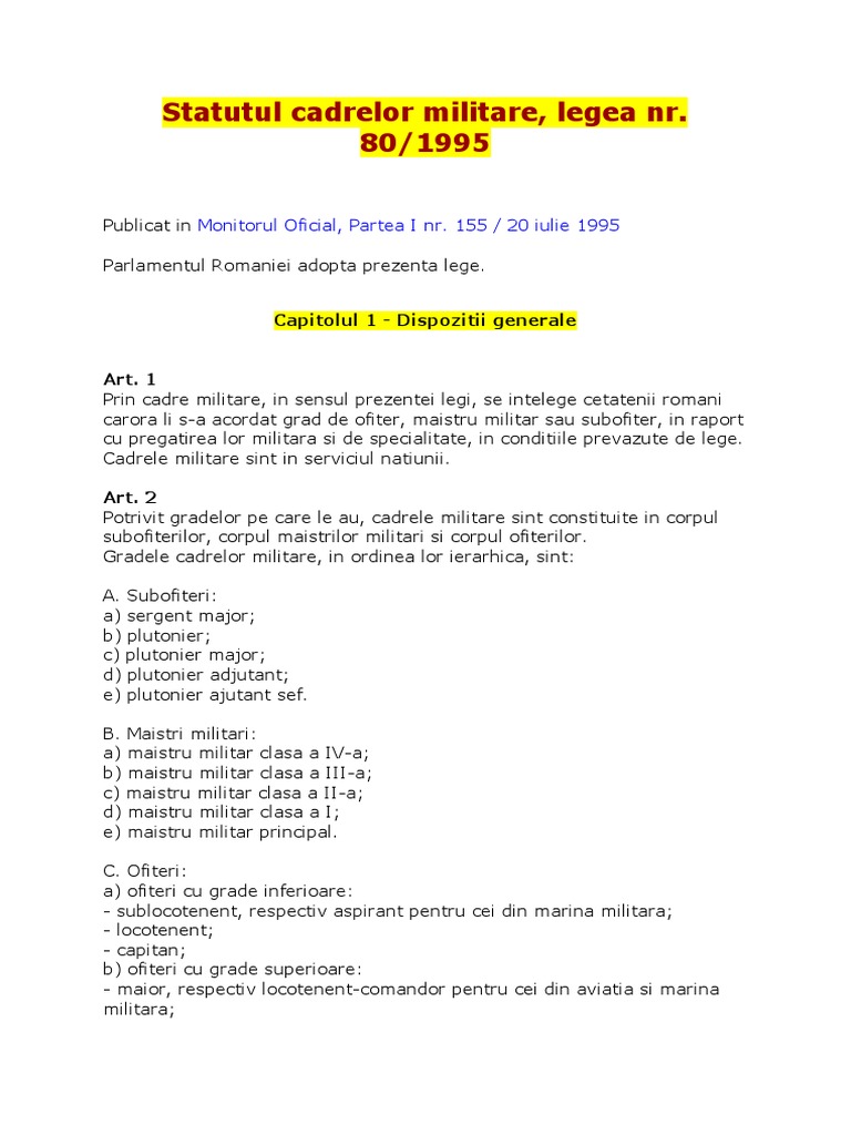 Legea Nr 80 Din 1995 Statutul Cadrelor Militare Actualizată