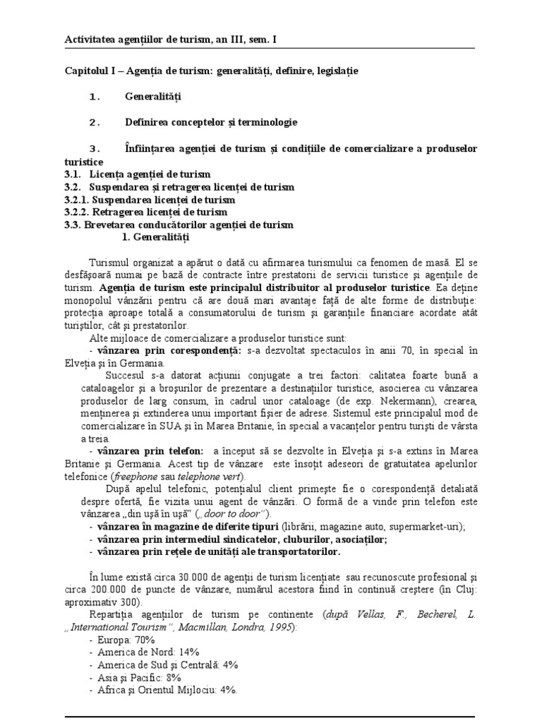 Activitatea Agentiilor In Turism