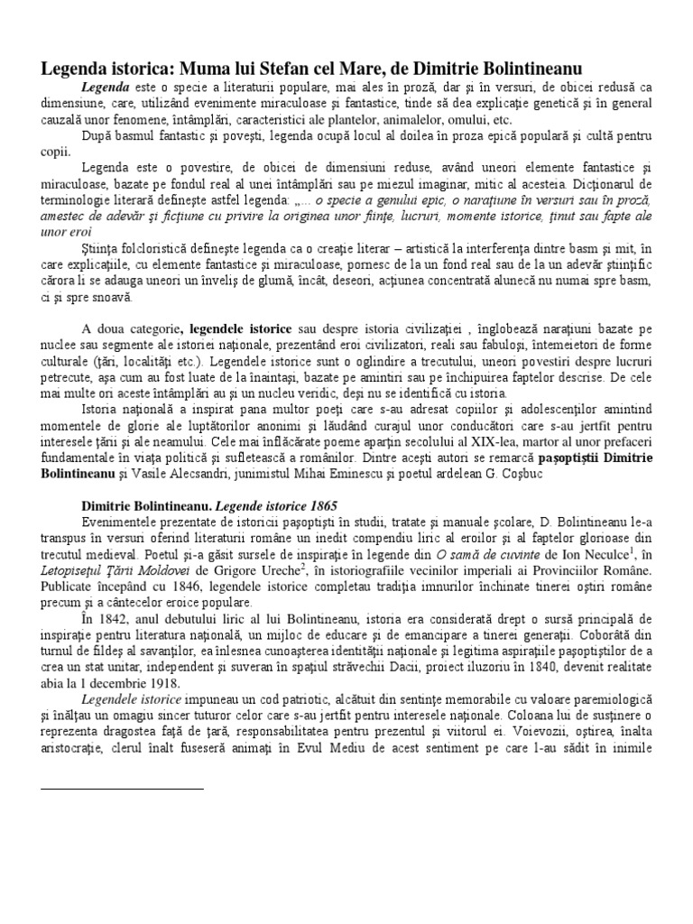 Legenda Istorica Muma Lui Stefan Cel Mare De Dimitrie Bolintineanu