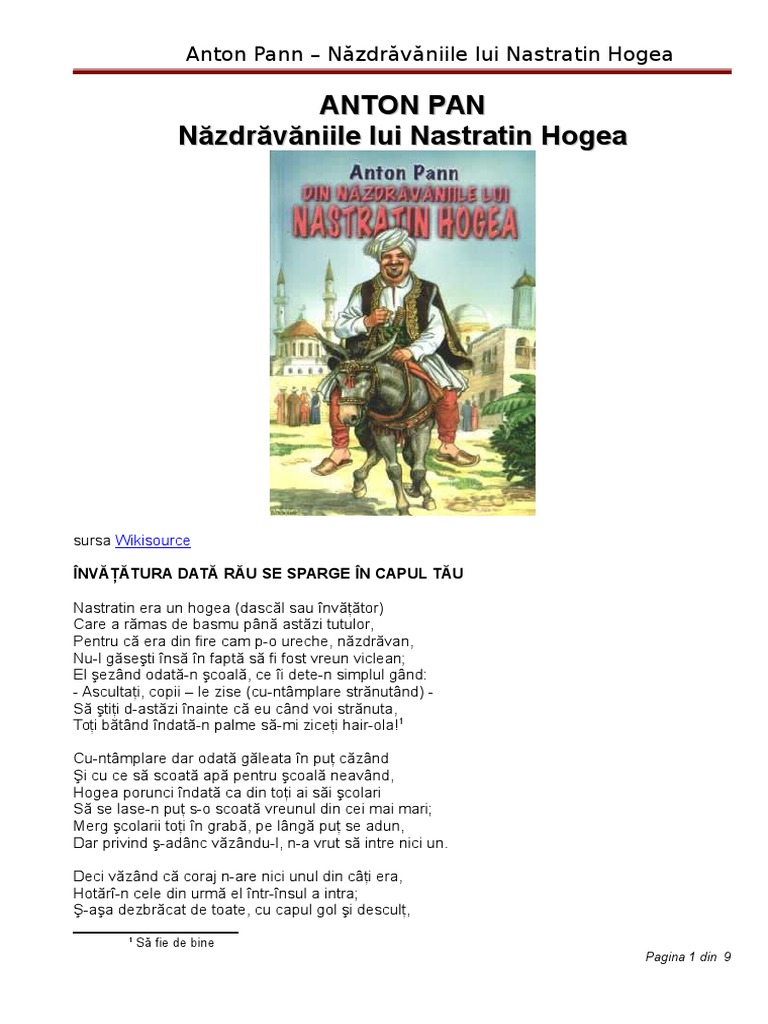 Nazdravaniile Lui Nastratin Hogea Cdn4 Lui Nastratin Hogea Anton Pann Pdfآ Anton Pann N Zdr Vlniile Pdf Document