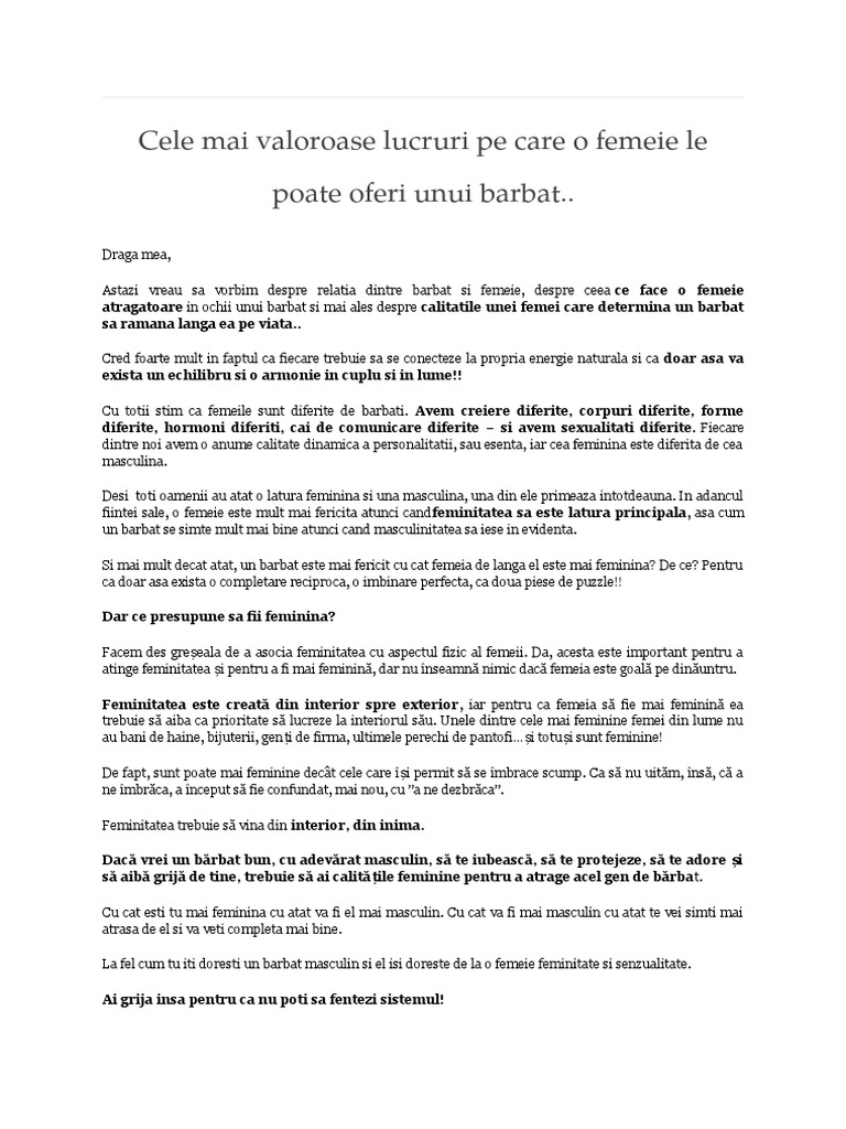 Cele Mai Valoroase Lucruri Pe Care O Femeie Le Poate Oferi Unui Barbat