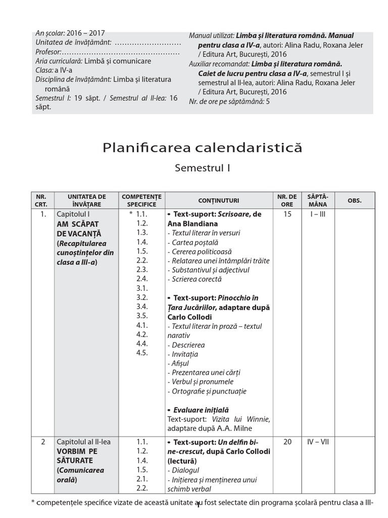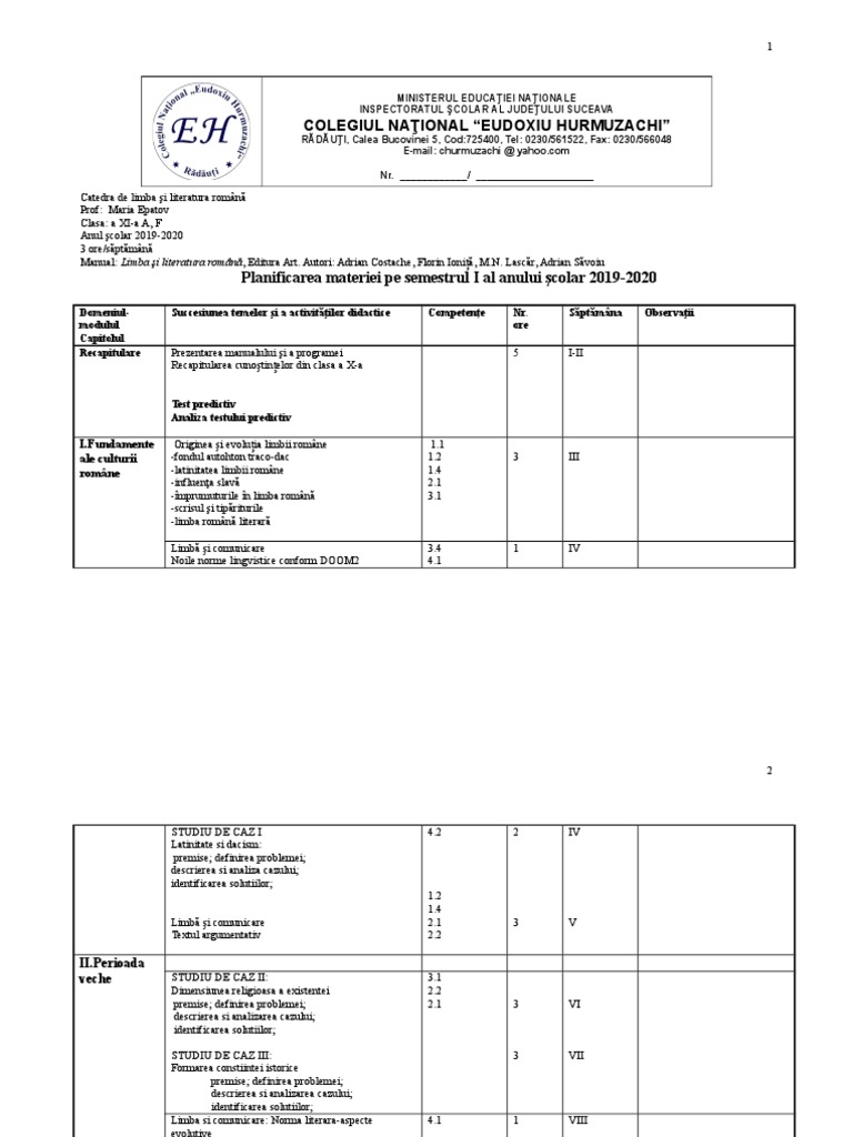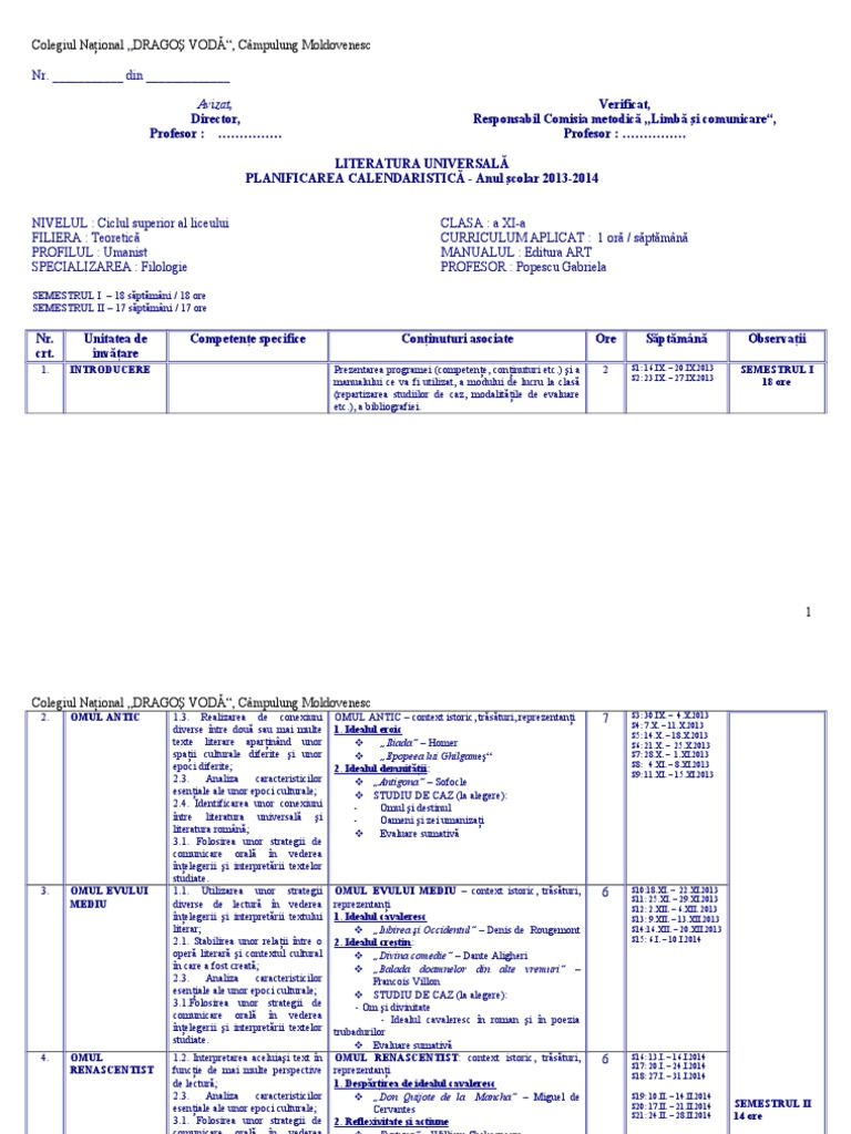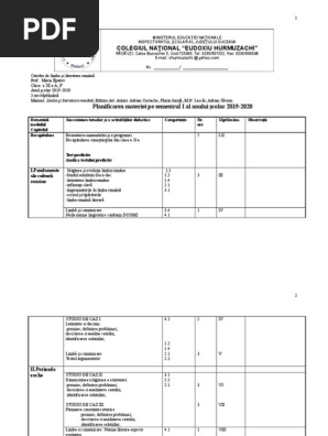 Planificare Limba Si Literatura Romană Clasa A Xi A Mada Madi 05 02 2012