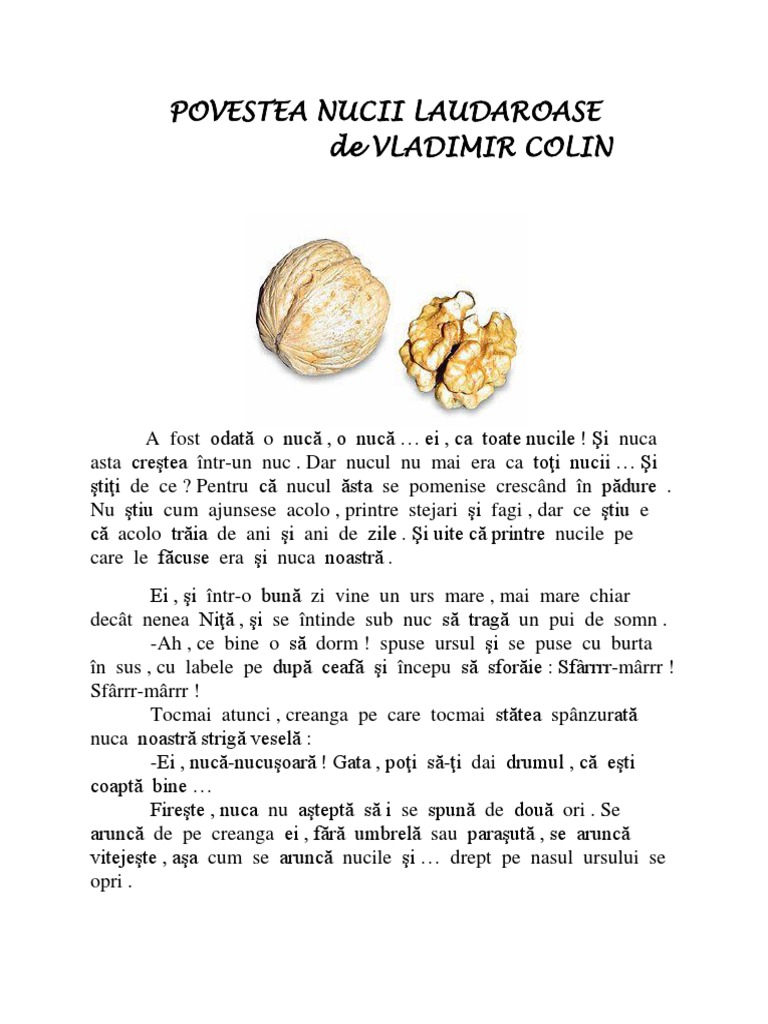 Povestea Nucii Lăudaroase Vladimir Colin Acasă și La Grădiniță