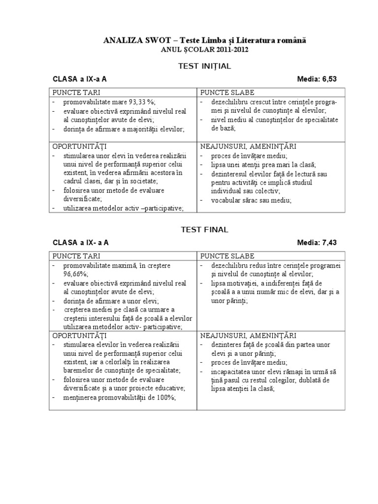 Analiza Swot Teste Initiale Gradatie Merit