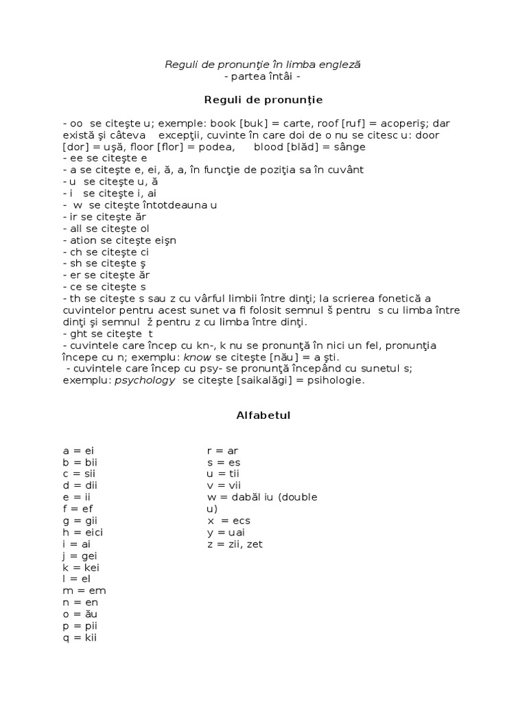 Reguli De Pronuntie Pdf In Limba Engleza Sunt Multe Exceptii Cand Vine Vorba De Pronuntie Sunt Si Cateva Reguli Generale Oo Se Citeste U Sh Se Course Hero
