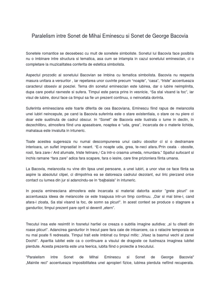 Referat Paralelism Intre Sonet De Mihai Eminescu Si Sonet De George Bacovia 178047 Graduo
