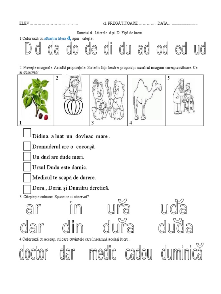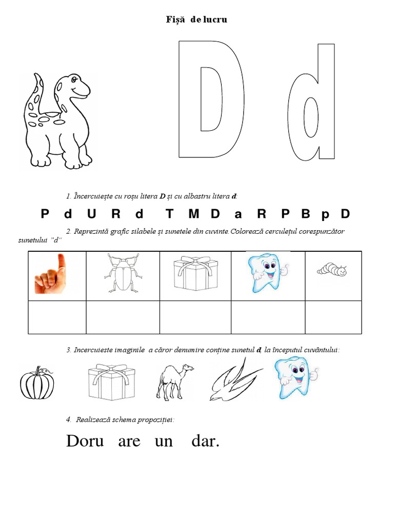 Lumea Lui Scolarel Fișă De Lucru Literele D și D Clasa Pregătitoare