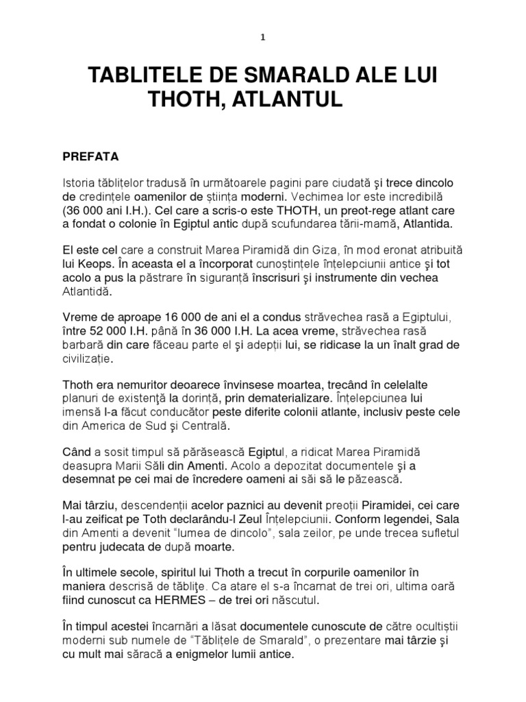 Tablitele De Smarald Ale Lui Thoth Atlantul Esteto Ro