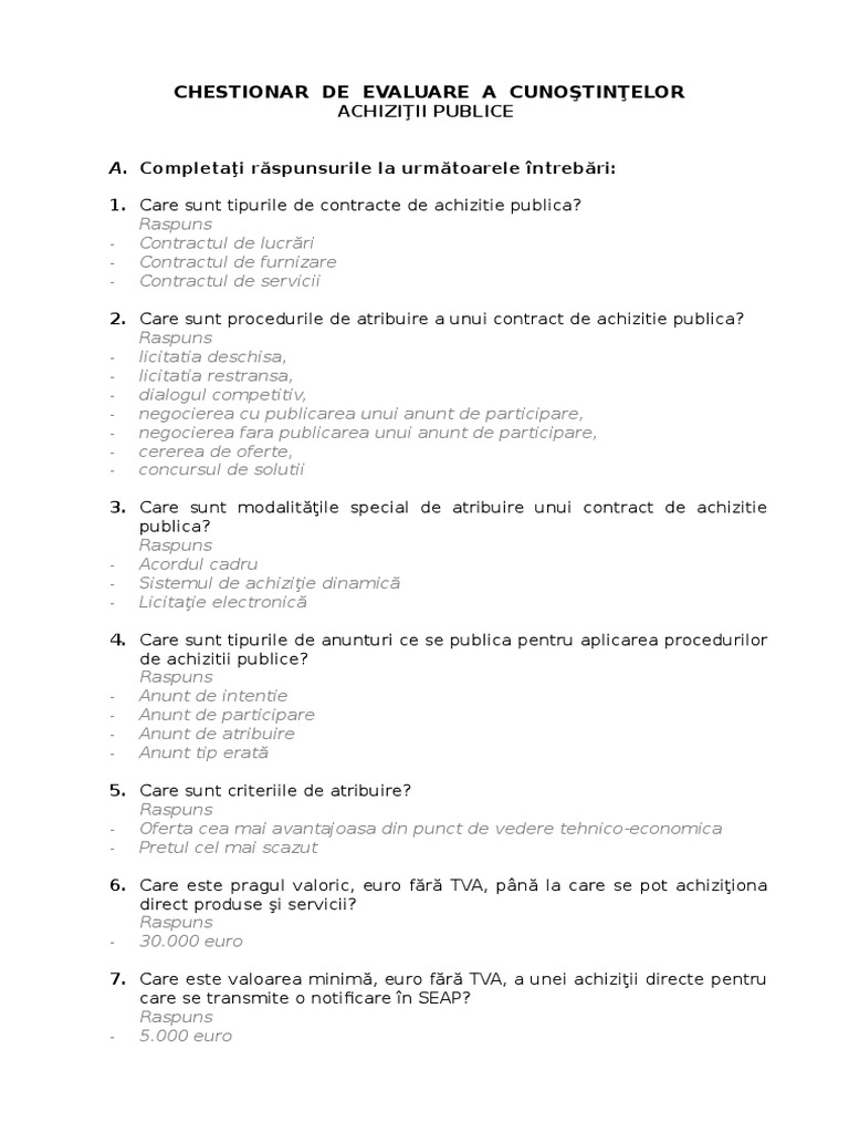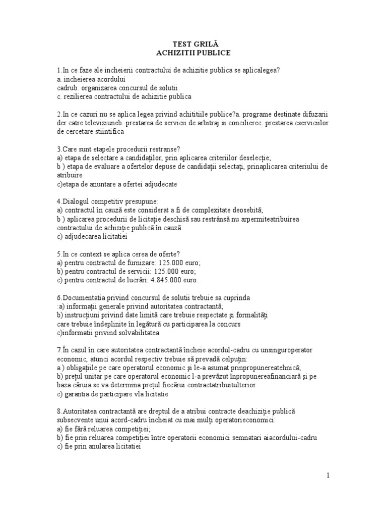 Teste Grila Achizitii Publice Cu Raspunsuri
