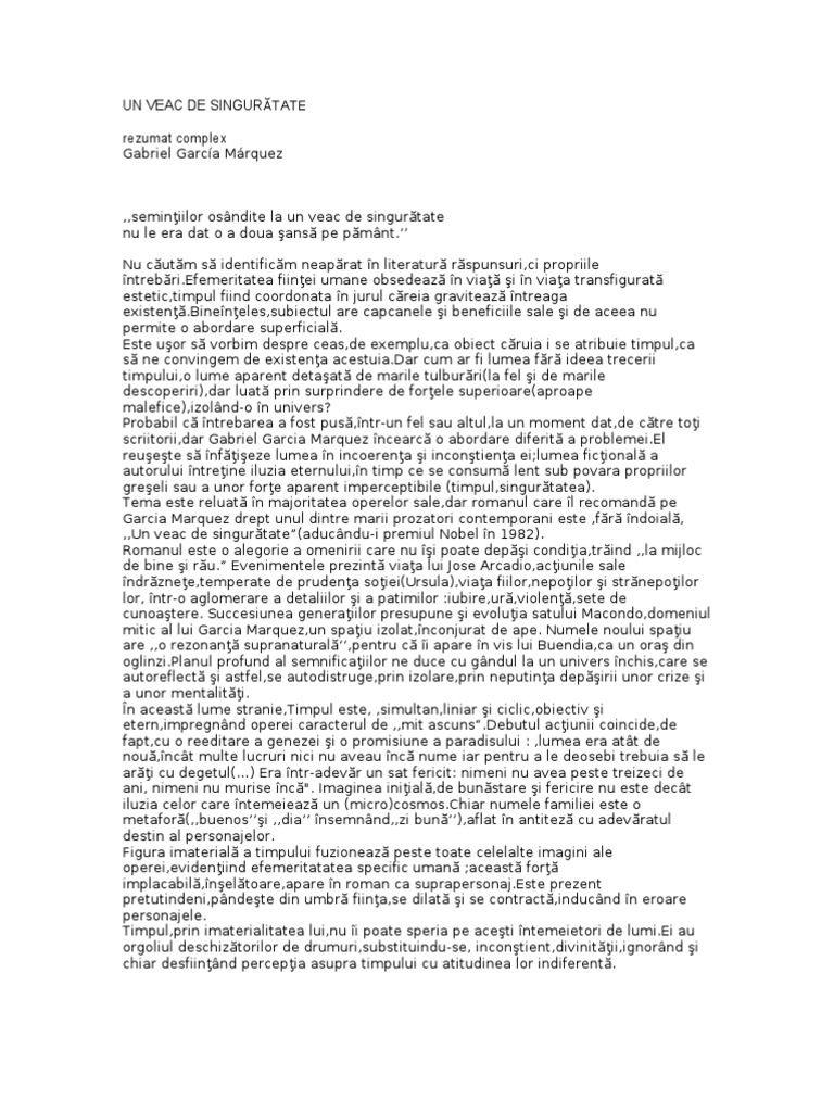 Gabriel Garcia Marquez Un Veac De Singurătate Iubesc Să Citesc