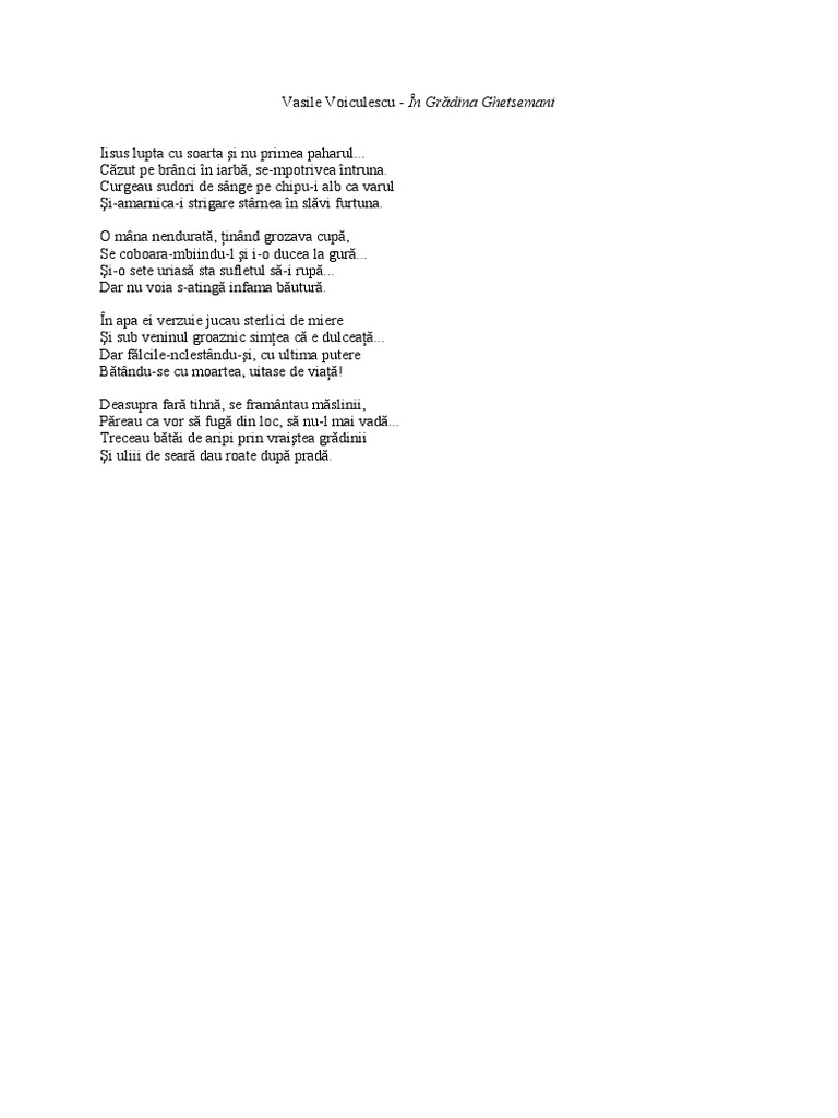 In Gradina Ghetsemani De Vasile Voiculescu