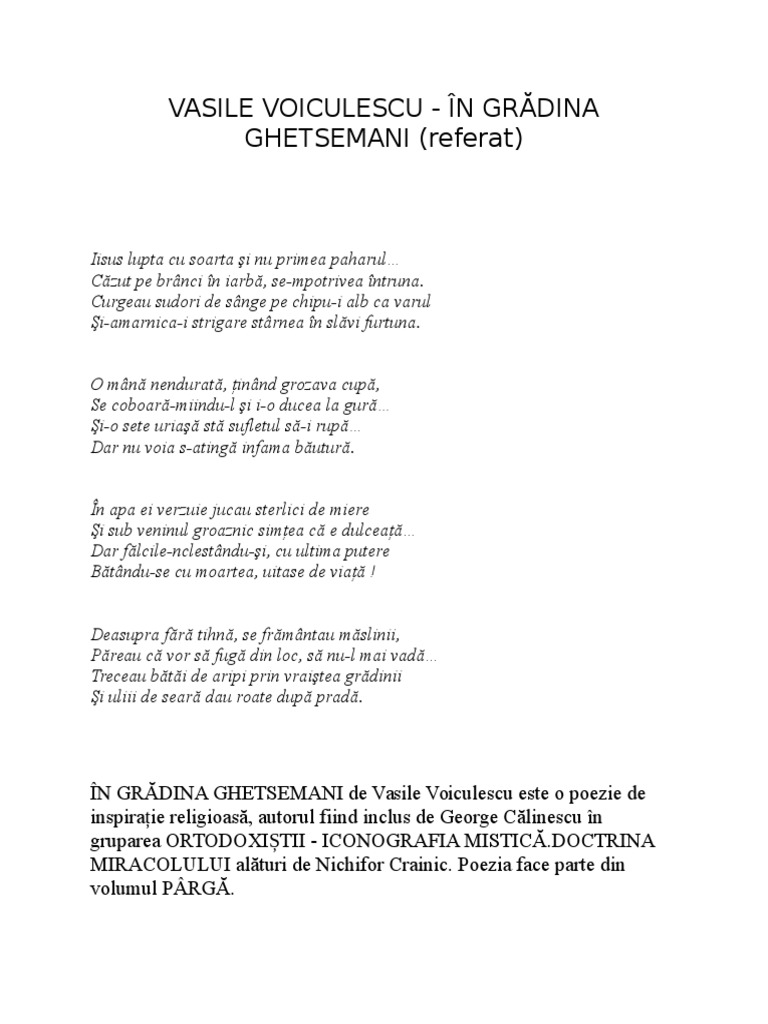 Referat Vasile Voiculescu In Gradina Ghetsemanii 330933 Graduo