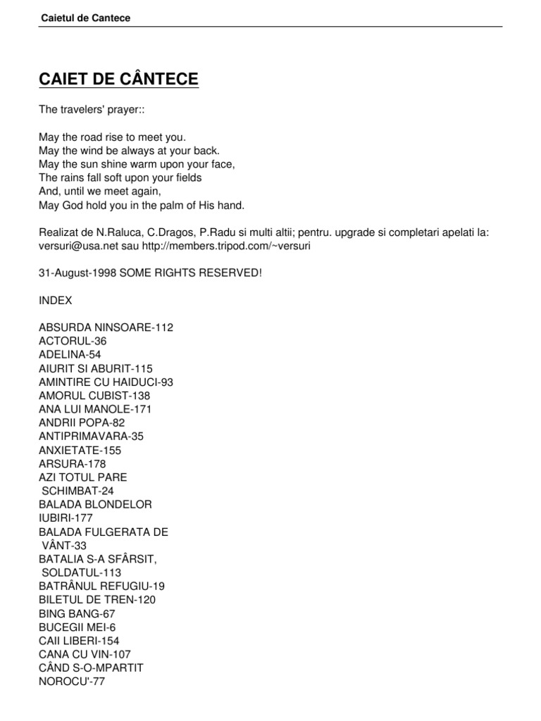 Caiet De Cantece